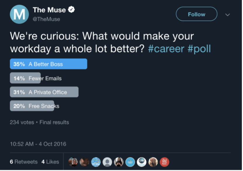 Twitter polls deserve their own category because they’re the best way to interact with your followers on the platform.