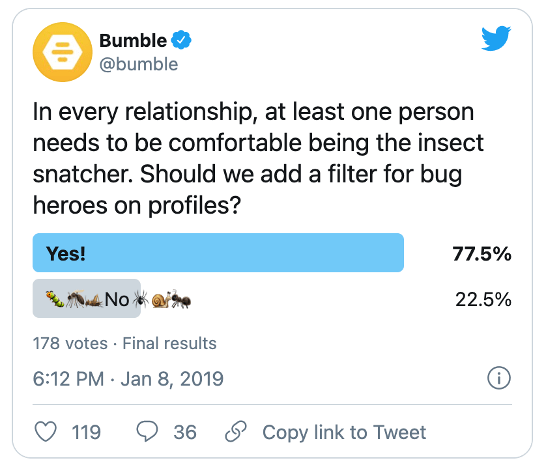 Although Twitter doesn’t offer quite as many opportunities for follower engagement as its social media counterparts, Twitter polls are a great way to interact with your audience and get feedback on new products, promotions, and services your business may be offering.