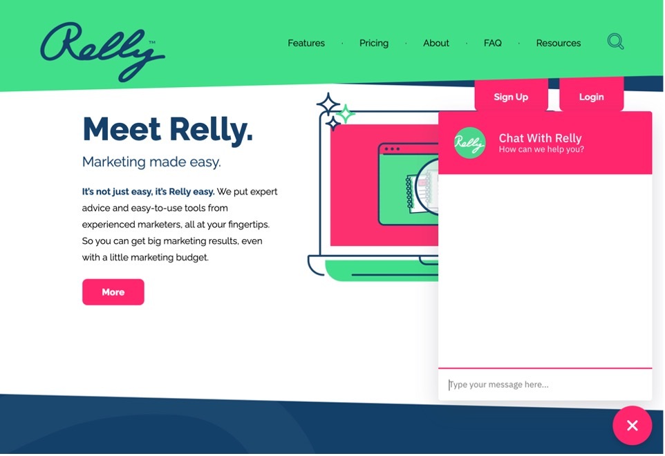 This technique can be applied via an AI chatbot or a real-life person and is commonly used in the form of a messaging system on your website’s homepage.